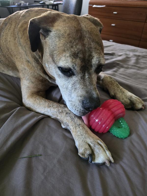 Outward Hound Gummiez Cherries 2-in-1 Dental Dog Chew & Dog Treat Dispensing Game Toy, Red