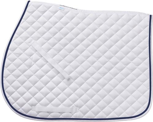 Ovation Coolmax Saddle Pad with Piping, White/Navy