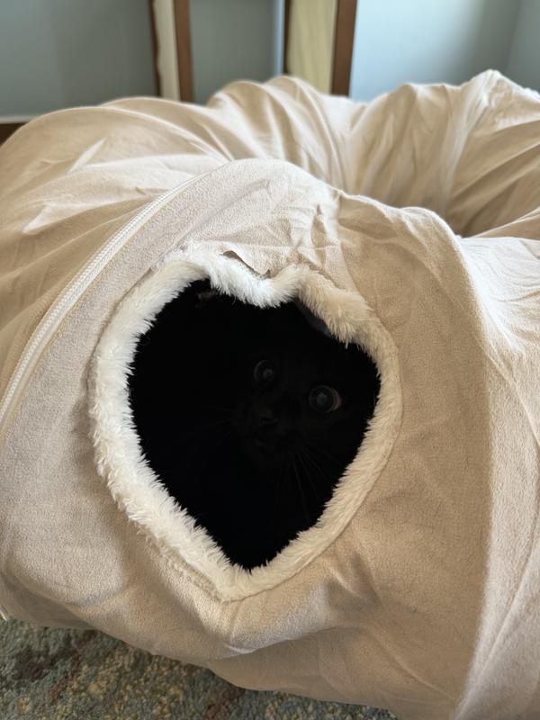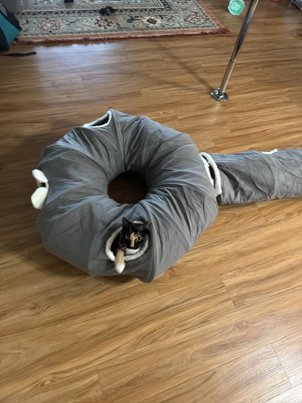 - Crafted from pet-friendly plush fabric, this tunnel bed offers a warm and comfortable space for your cat to nap, hide, or play.