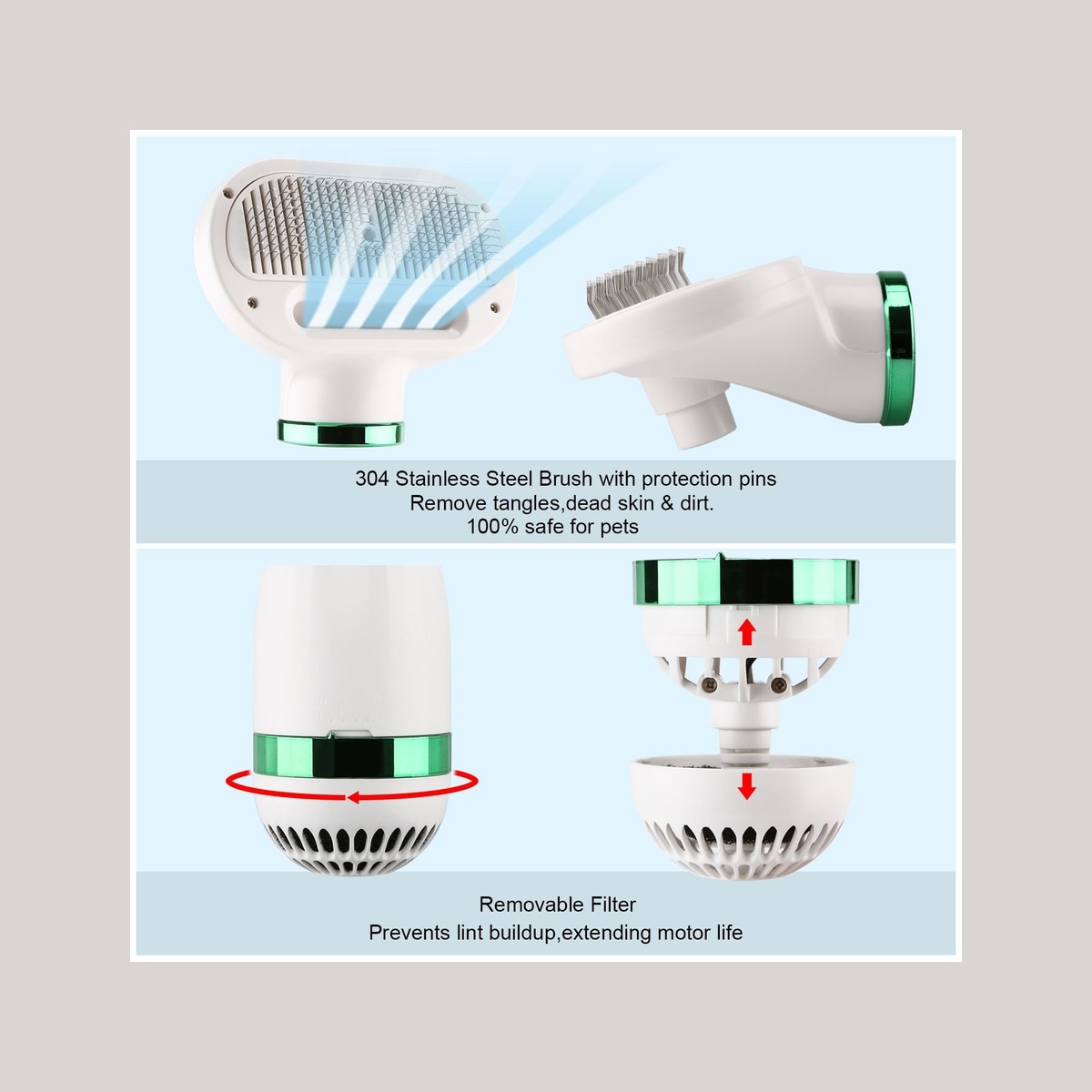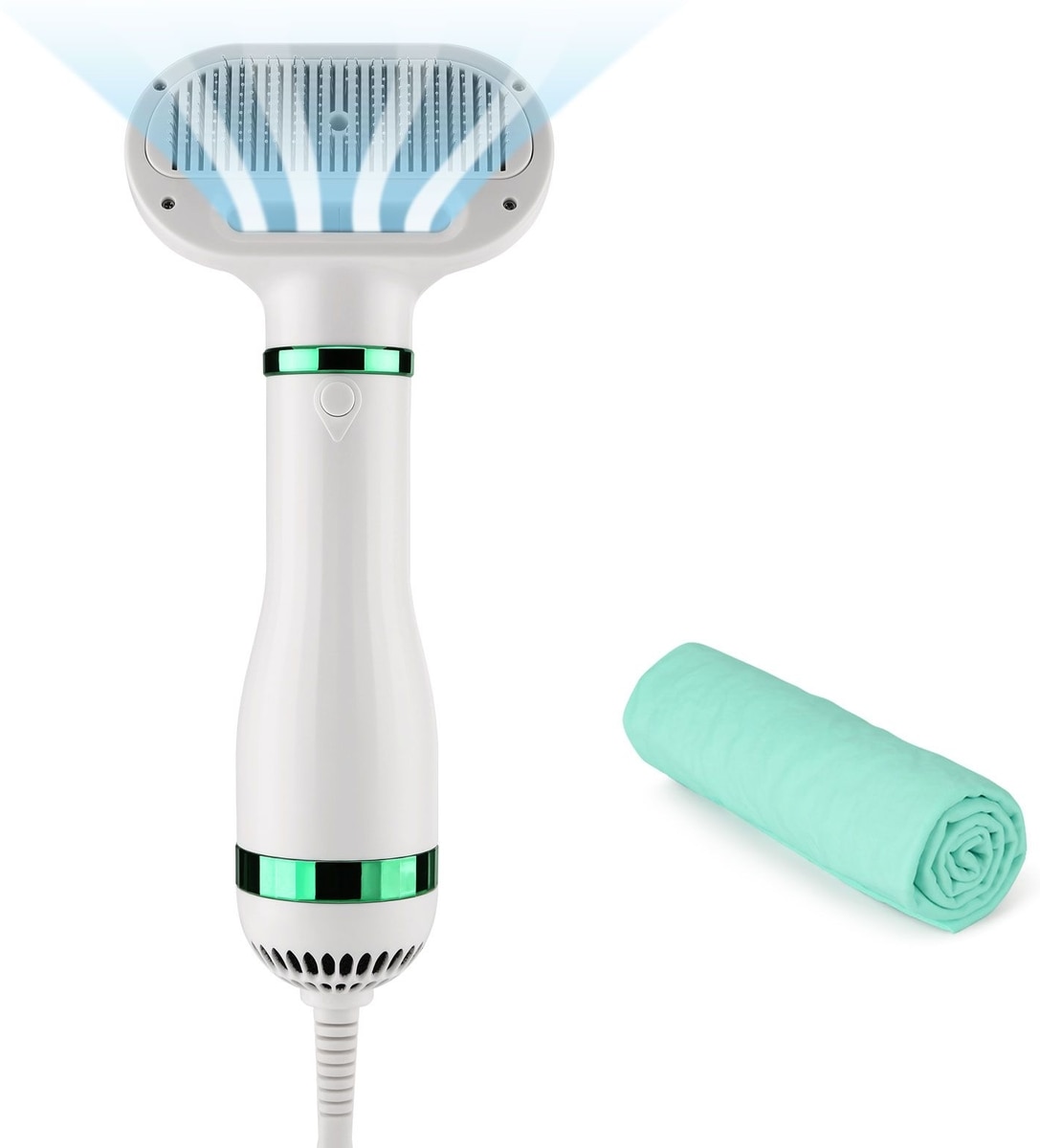 - Three-in-one pet grooming tool works as a hair dryer, slicker brush and deshedding tool to promote a healthy coat.