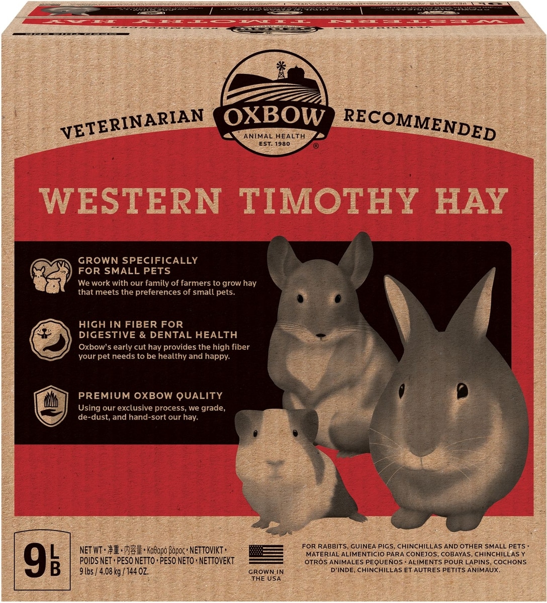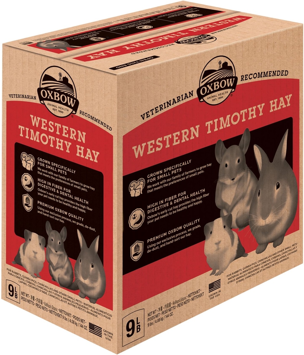 Oxbow Animal Health Western Timothy Hay All Natural Hay for Rabbits, Guinea Pigs, Chinchillas, Hamsters & Gerbils, 9-lb bag, bundle of 2