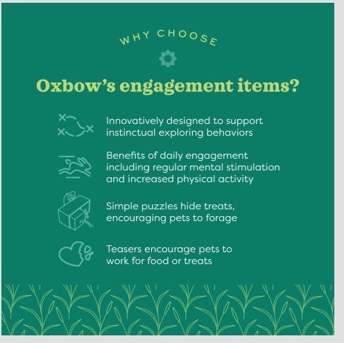Family-owned and operated, Oxbow is passionately committed to helping small animals lead longer, healthier lives. Grown by experts on Oxbow's family of farms, their formulas and life-staged diets have defined the way small animals are fed today. From plant to pet, Oxbow products meet the highest standards time and time again.