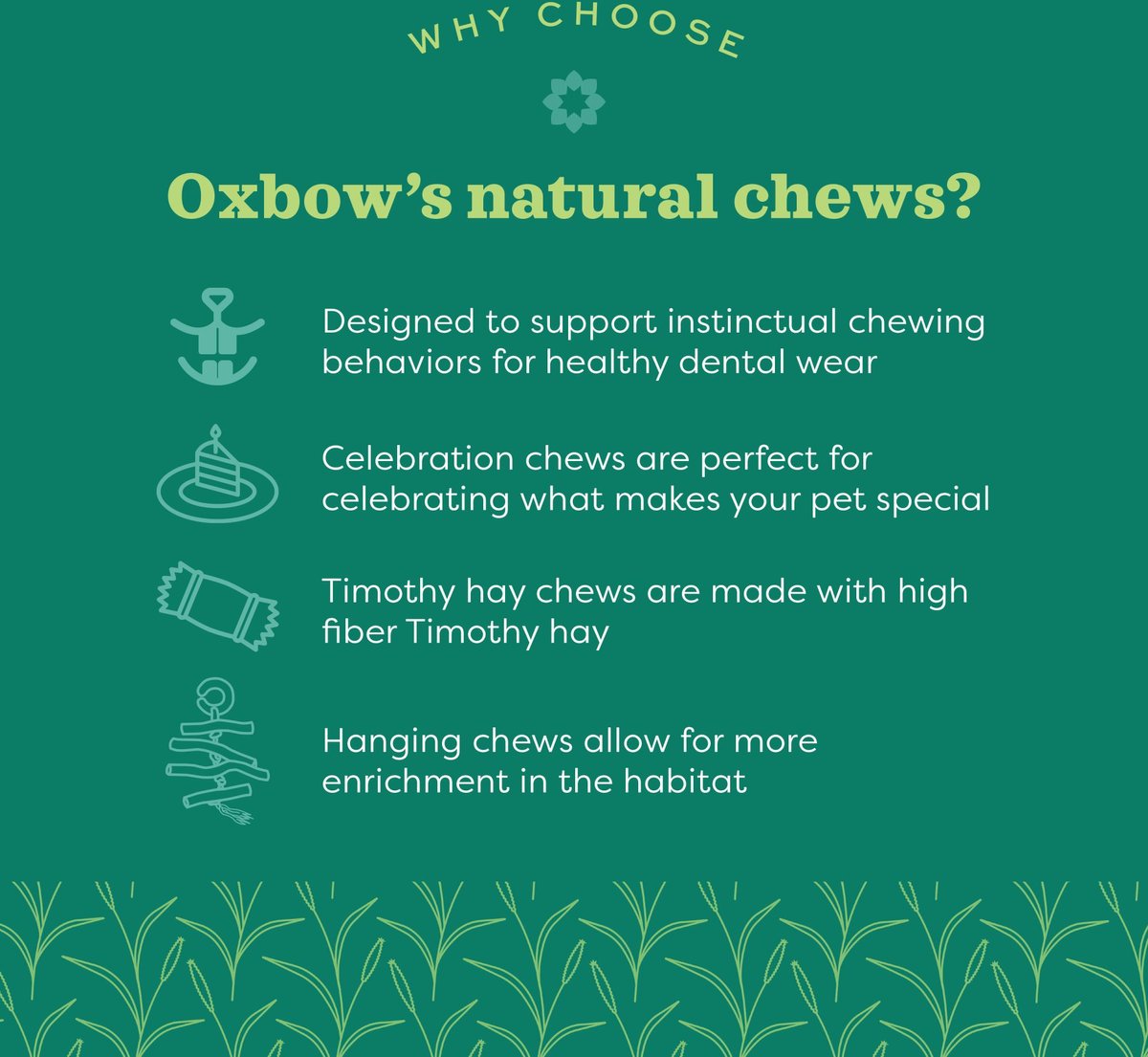 - Oxbow Simple Rewards Oven Baked with Carrot & Dill Small Animal Treats, 3-oz bag$3.82 Chewy Price$4.49 List Price$3.63 Autoship PricePromo, New Customers Only: Spend $49+, Get $20 eGift Card