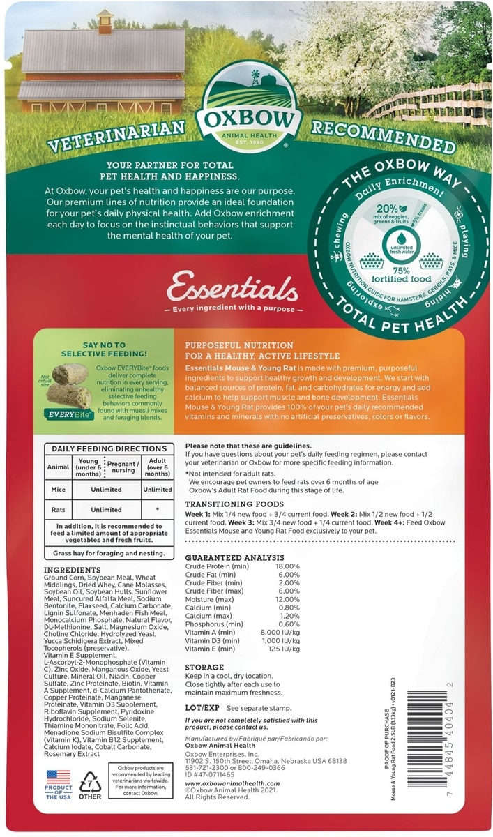 Oxbow Essentials Mouse & Young Rat Food All Natural Mouse & Young Rat Food, 2.5lb.