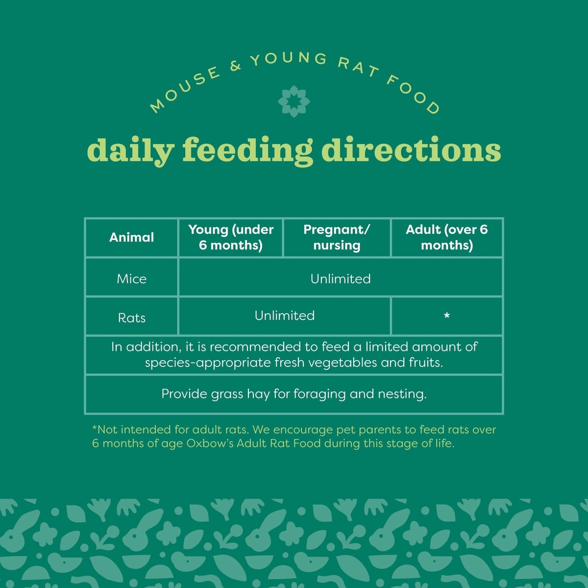 - Oxbow Garden Select Mouse & Young Rat Food, 2-lb bag$9.49 Chewy Price$9.02 Autoship PricePromo, New Customers Only: Spend $49+, Get $20 eGift Card