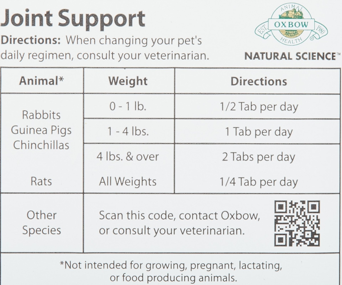 Oxbow Natural Science Joint Support Small Animal Supplement, 60 count