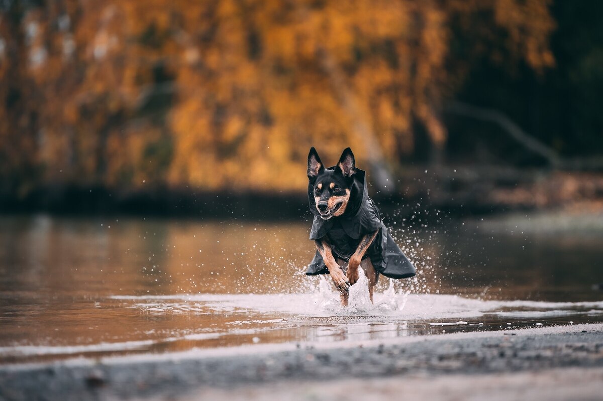 This raincoat is designed for cold weather and features an inner wool mix lining that is designed to keep your dog warm. The waterproof and warm hood keeps the water and chill from getting in through the collar.