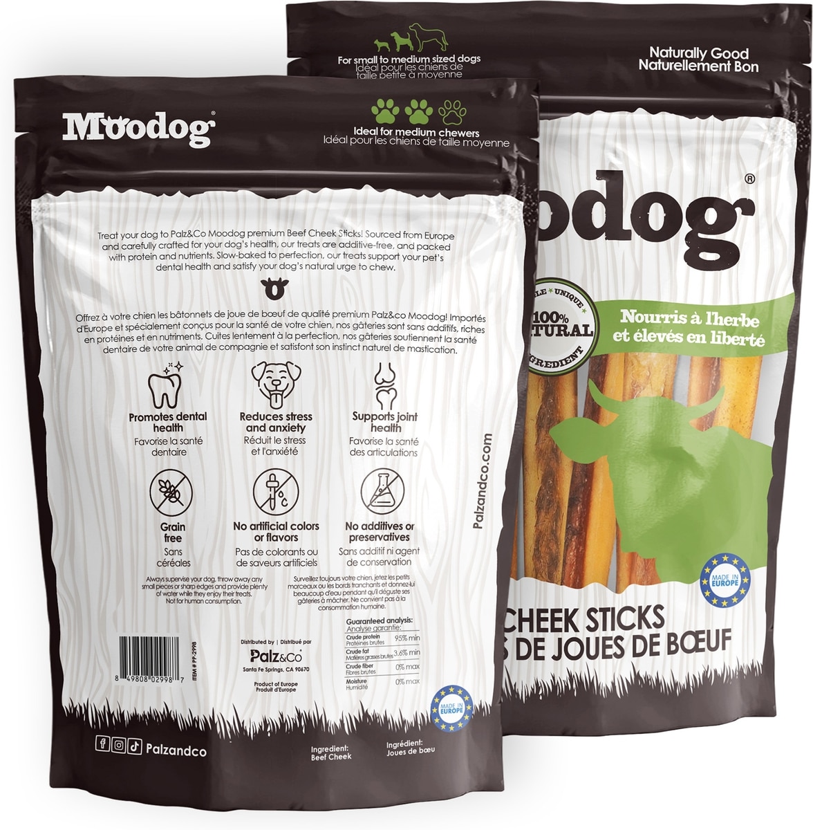 Palz&Co Moodog Beef Grain-Free Soft & Chewy Cheek Strips Sticks Dog Treats, 10-oz bag, 12 count