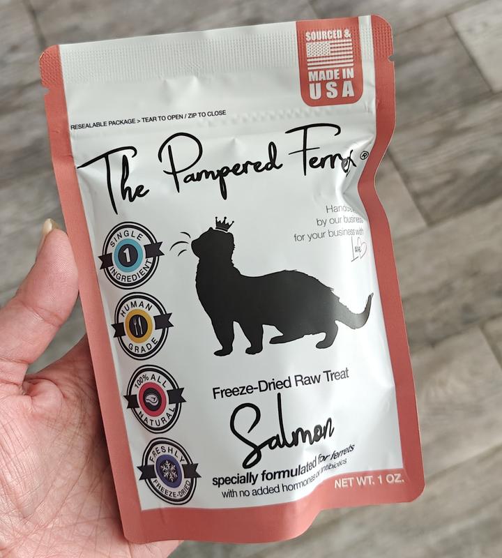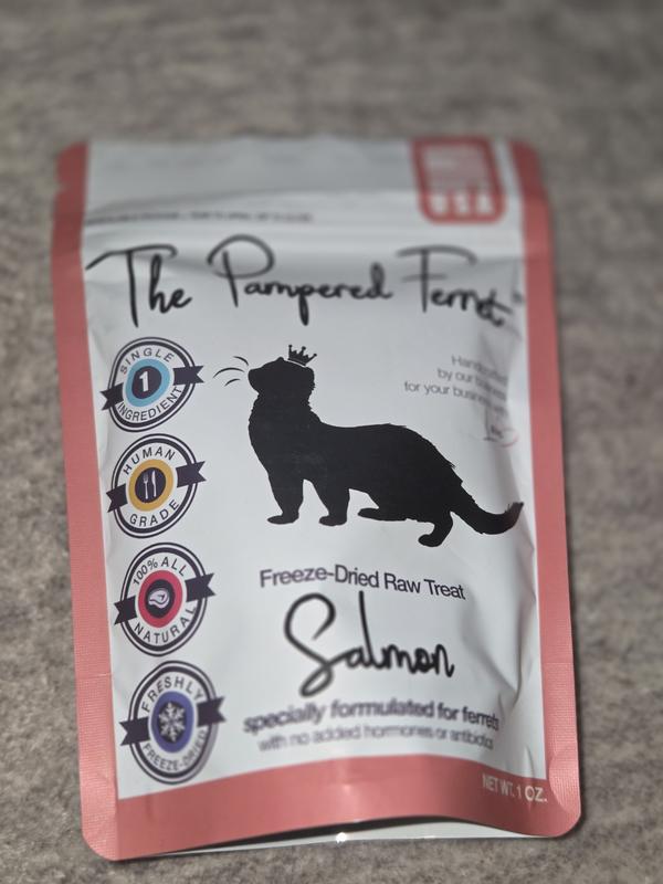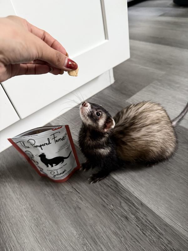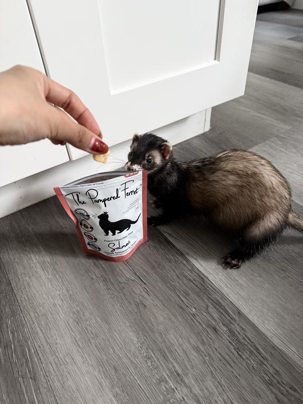 Every ferret needs a healthy treat every now and then. The Pampered Ferret freeze dried salmon treats seem to be a big hit at our house. We have to make sure the