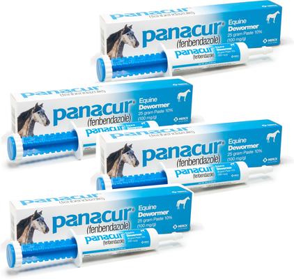 PANACUR (fenbendazole) Paste 10% is administered orally at a rate of 2.3 mg/lb (5 mg/kg) for the control of large strongyles, small strongyles, and pinworms. One 25 gram syringe will deworm a 1,100 lb horse. For foals and weanlings (less than 18 months of age) where ascarids are a common problem, the recommended dose is 4.6 mg/lb (10 mg/kg); one 25 gram syringe will deworm a 550 lb horse.