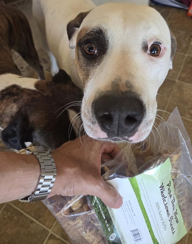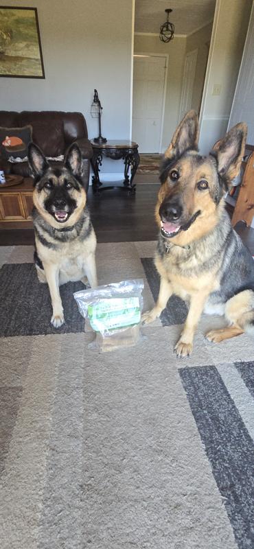 These are the favorite treats in the house now. Both girls know exactly where they are stored and check to make sure the bag is still around each day, even if they can't reach then. Luckily! They gobble them up and look for crumbs in all the nearby crevices. Highly recommend based on the 4 paws up rating from both dogs.