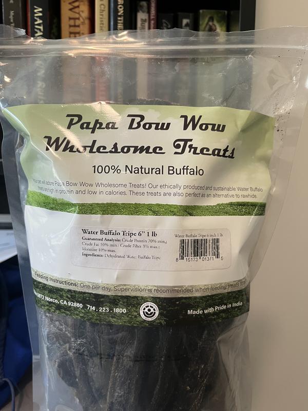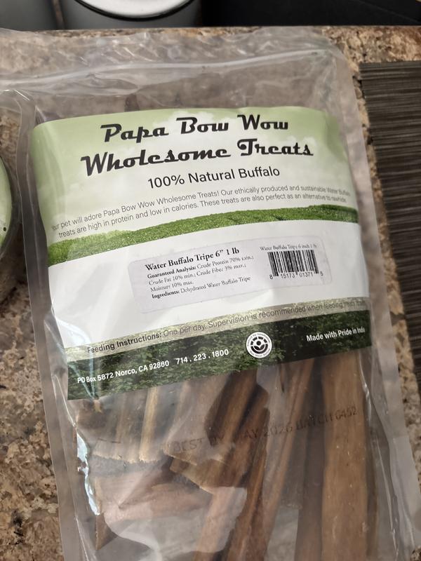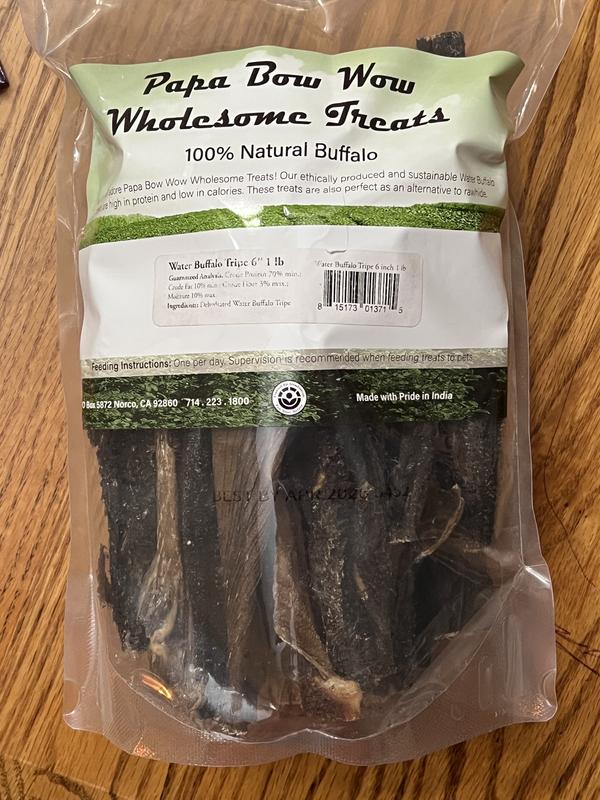 I recently tried the Papa Bow Wow Wholesome Treats for my dogs, and I have mixed feelings. On the positive side, these treats are made from 100% free-range, grass-fed water buffalo, making them a healthy and ethical choice. They're high in protein, low in calories, and rich in essential nutrients like potassium, vitamins B6 and B12, and omega-3 fatty acids. Plus, they're free from GMOs and antibiotics. The good news is that both of my dogs absolutely loved these treats. However, there's a significant drawback: the smell is overwhelmingly strong and unpleasant. It was so intense that I had to open doors, turn on fans, and even wear a face mask while my dogs were eating them. While the nutritional benefits are great, the odor is a major concern for indoor use. I highly recommend giving these treats to your dogs only when they're outside. If you have a sensitive nose or live in a small space, you might want to think twice before purchasing. In conclusion, while these treats are loved by dogs and offer excellent nutritional value, the strong odor makes them best suited for outdoor use only. Consider your living situation and sensitivity to smells before buying.