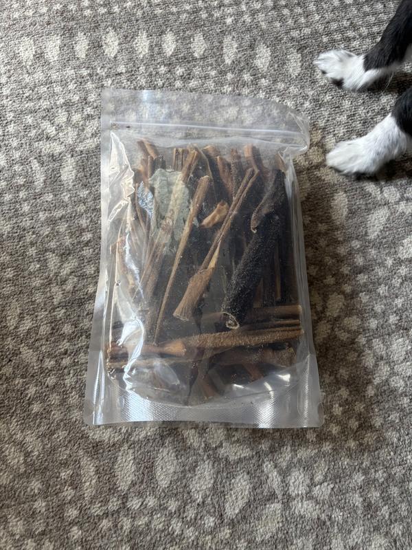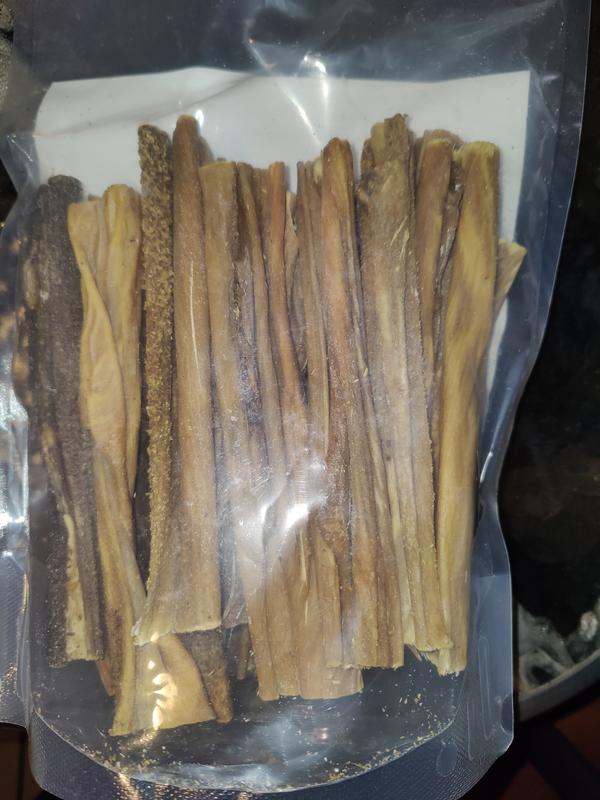 Out of the box my pets was excited. On opening, there was a slight smell. The length was just right for my small dogs and they loved them. Although the chews doesnt lst ling with my chewers. they told me we would be buying these again.