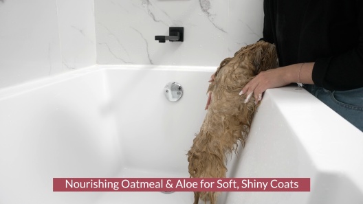 - Dog shampoo features nourishing oatmeal and soothing aloe—creating a comforting bathtime experience for your fur-iend.