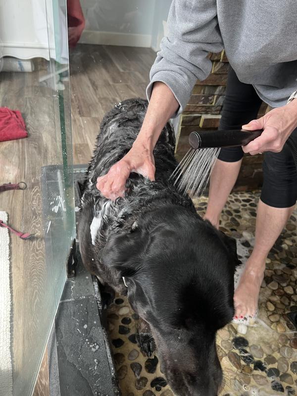 - This dog shampoo is easy to rinse out and doesn’t leave a residue.