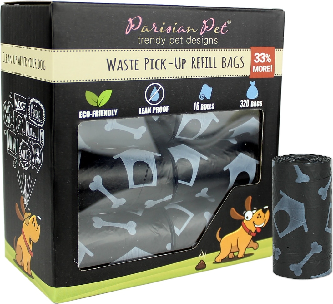 Parisian Pet Dog House Waste Bags Eco-Friendly Leak-Proof Black Poop Bag for Dogs, 16 count