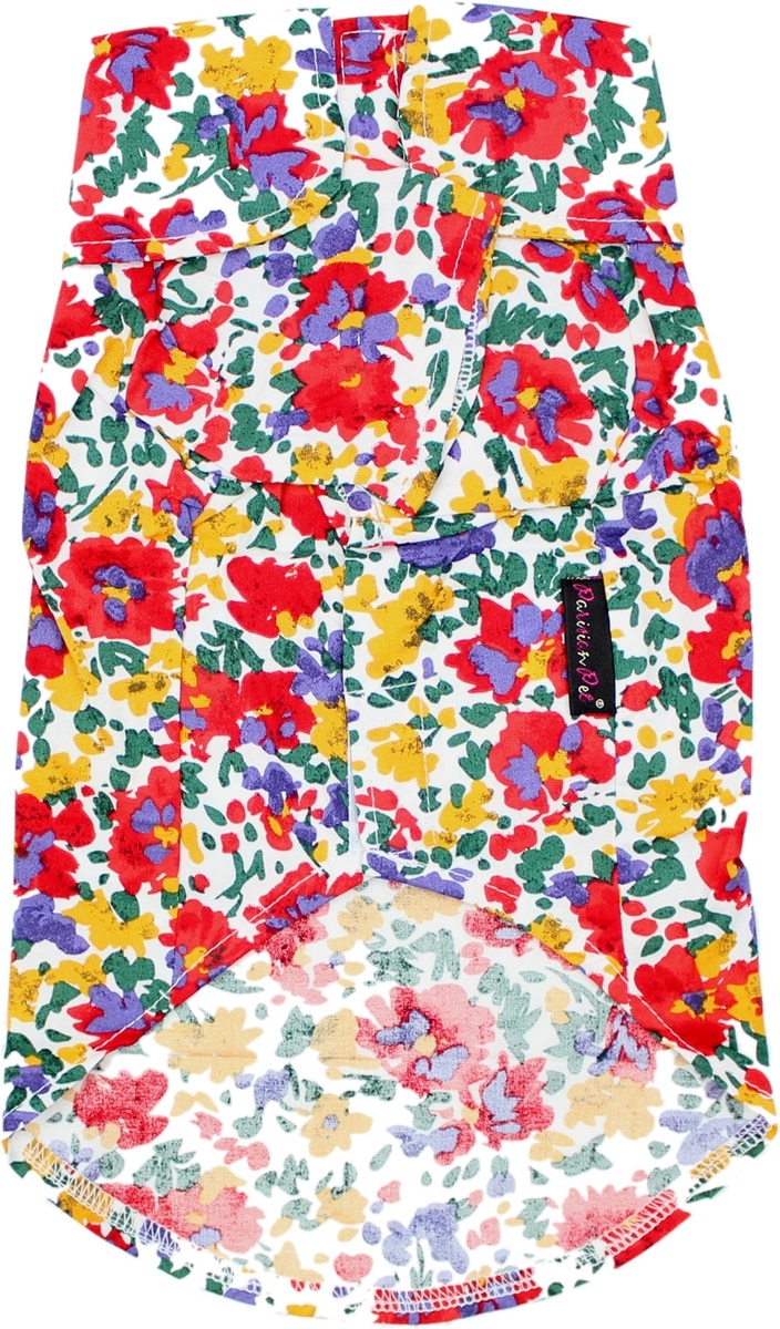Parisian Pet Floral Artsy Camp Shirt Botanical Print Cotton Dog Tee, Small
