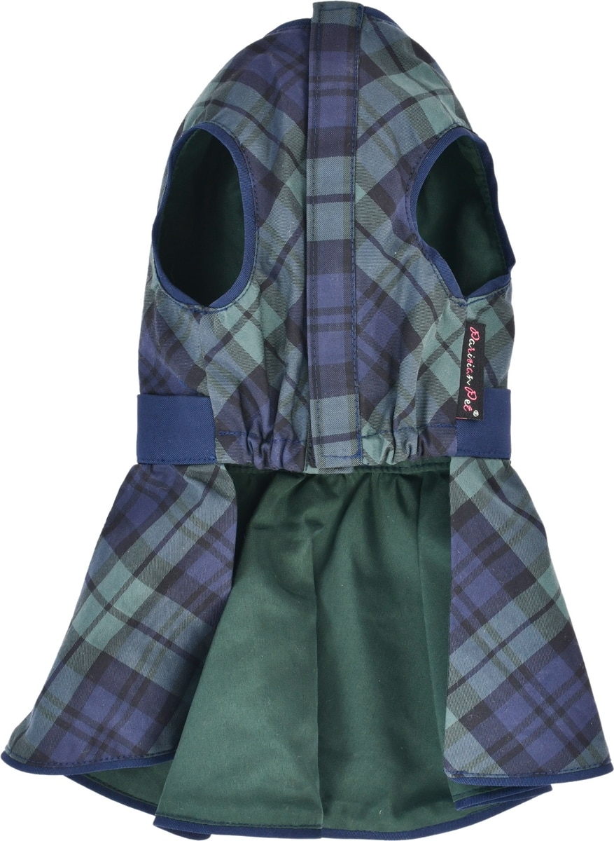 Parisian Pet Scottish Taffeta Dress Plaid Dog Gown, Green & Blue, Small