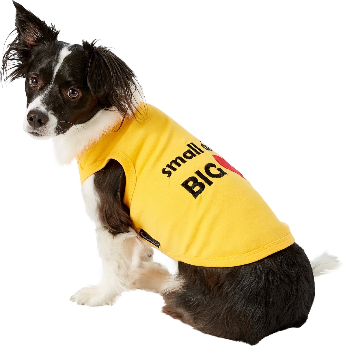 - Made from 100% cotton with the words “Small Dog Big Heart” embroidered on the back.
