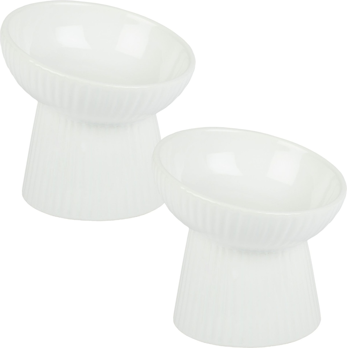 Park Life Designs Fluted Tilt Cat Elevated Bowl Set, 2 count, White, Small