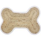 Natural fiber backing that will not stain or discolor kitchen floor w/bone shape