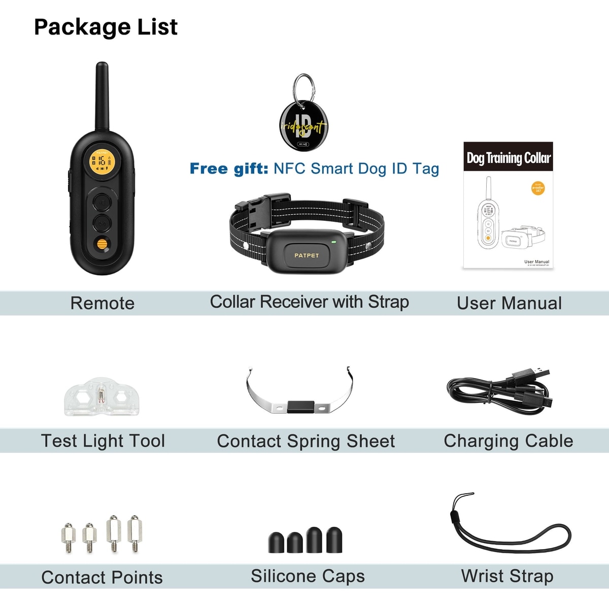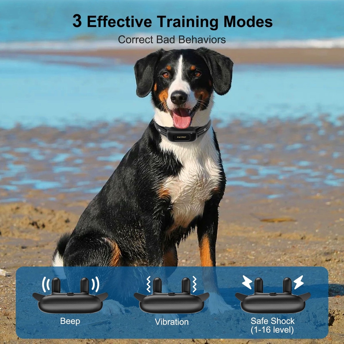 PATPET 2000-ft Waterproof & Adjustable Dog Training Collar, 9.8-25-in, Black