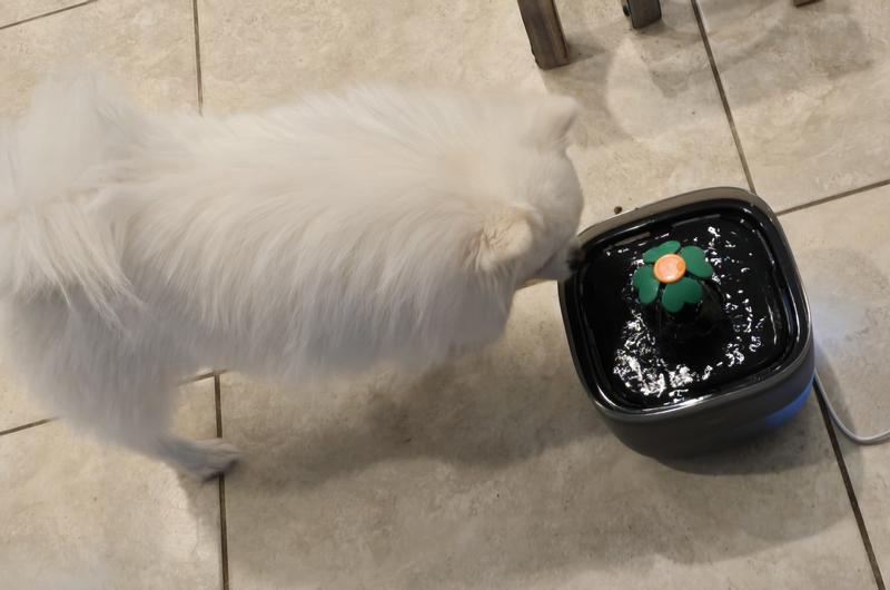 I waned a way to keep fresh water available for our pup and purchased this water fountain. At first he was a bit stand offish (for the first 20 seconds) and then would lick the water as it flowed from the tree. Funny part is every time he goes by it, he stops and takes a few licks and then he's back on his way. I think he finds it interesting. Easy to assemble and comes with two charcoal filters to keep the water fresh.