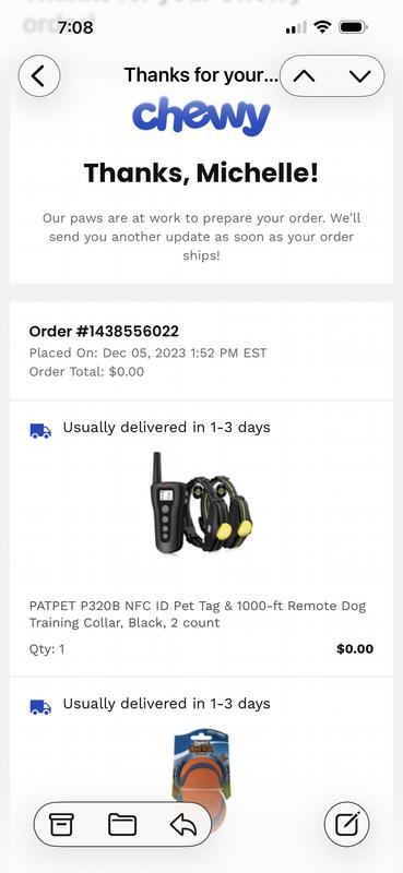 - PATPET 2000-ft Waterproof & Adjustable Dog Training Collar, 9.8-25-in, BlueRated 4.3 out of 5 stars4.3904Reviews$29.99 Chewy Price$29.99$31.99 List Price$31.99Promo, Spend $100, Get $30 eGift Card with code NEWYEAR +1 deal