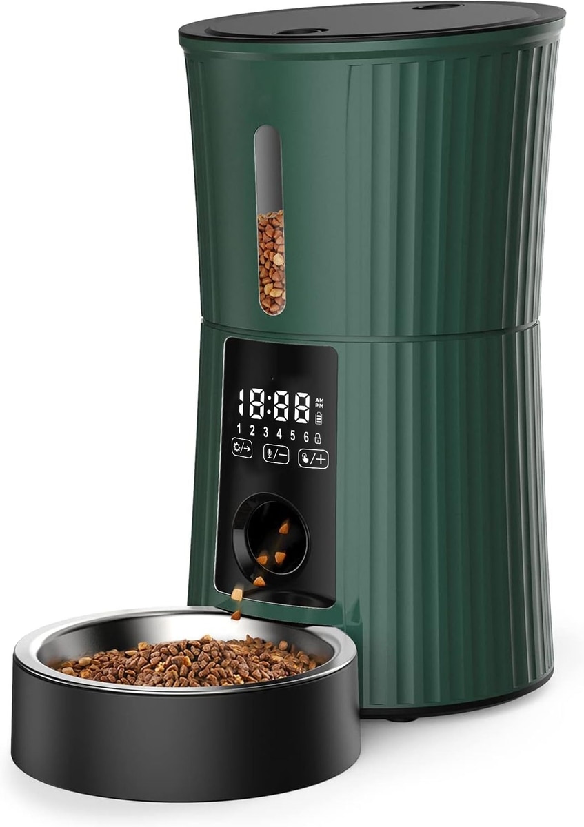PATPET Timed Automatic Dog & Cat Feeder with 10s Voice Recorder, 4-L, Green