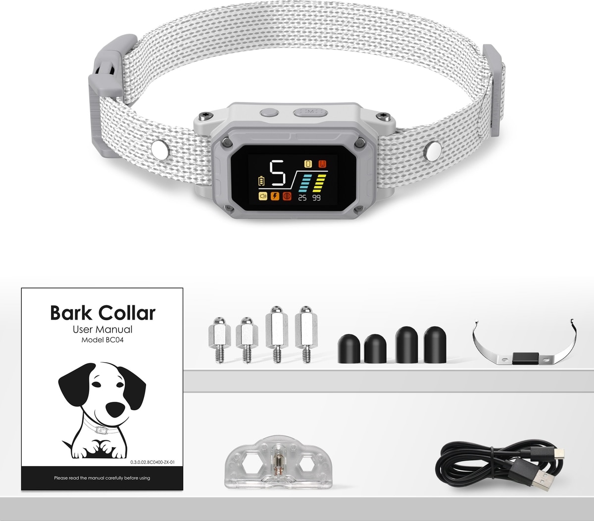 PATPET Waterproof Smart Anti-Bark Dog Collar, Gray