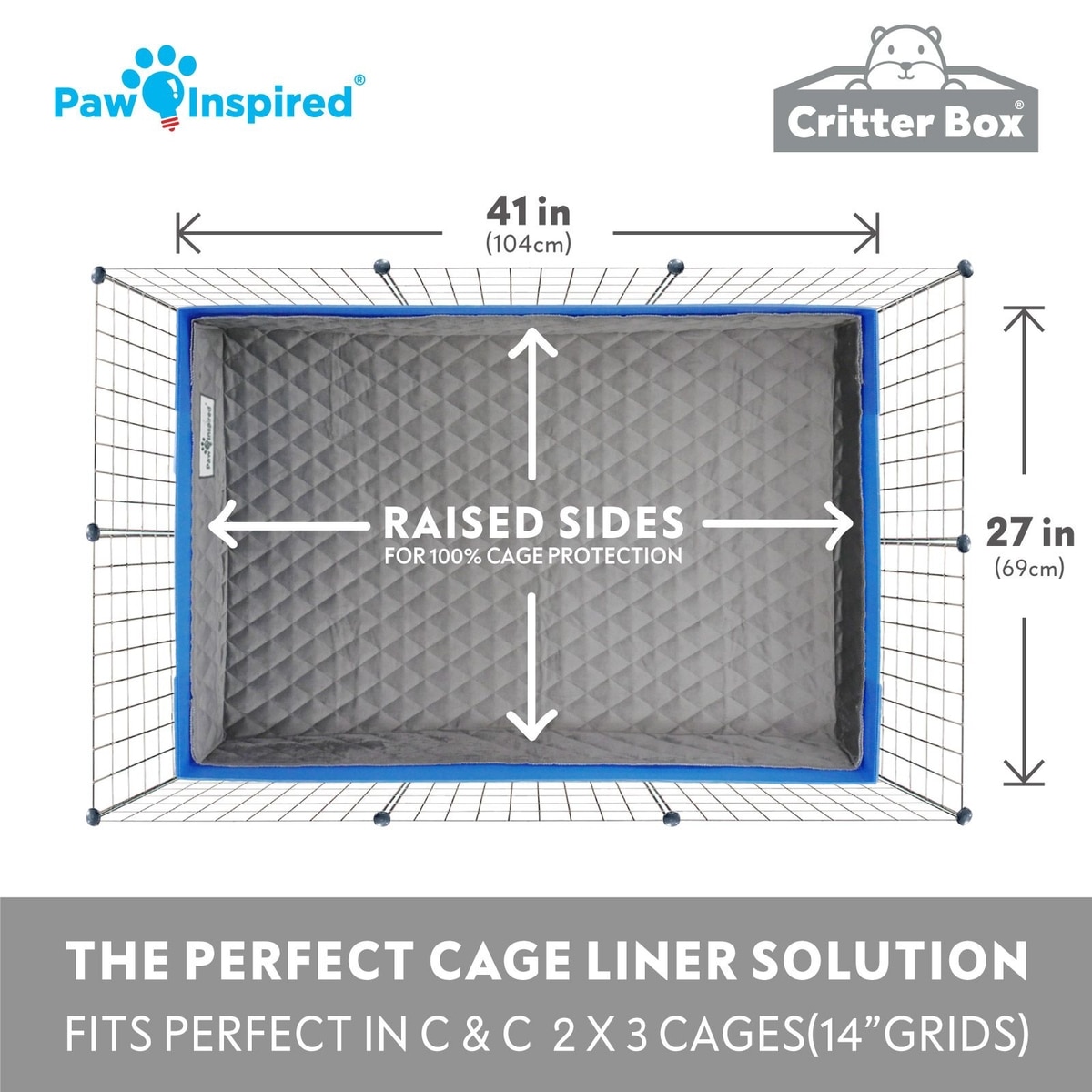 Paw Inspired Critter Box Washable Fleece Guinea Pig Cage Liner & Bedding with Raised Sides, C&C 2x3, 1 count