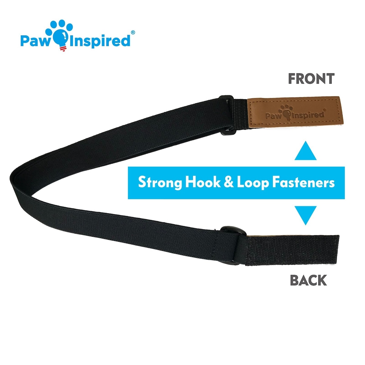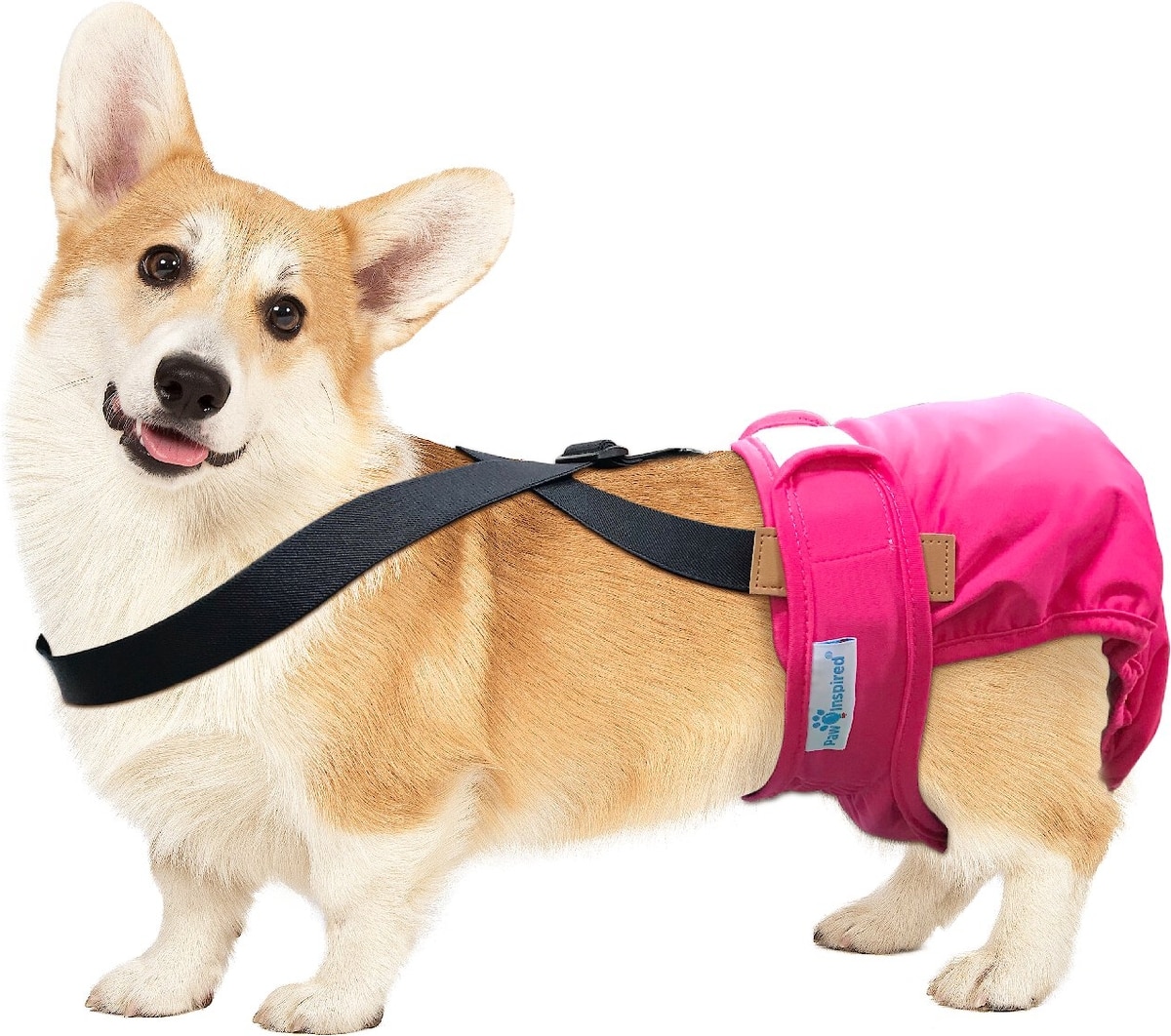 Paw Inspired dog suspenders use strong hook-and-loop fasteners to secure to diapers. Just stick the fasteners to your pup's diaper and you're all set. For extra security, place the diaper fasteners over the suspenders.