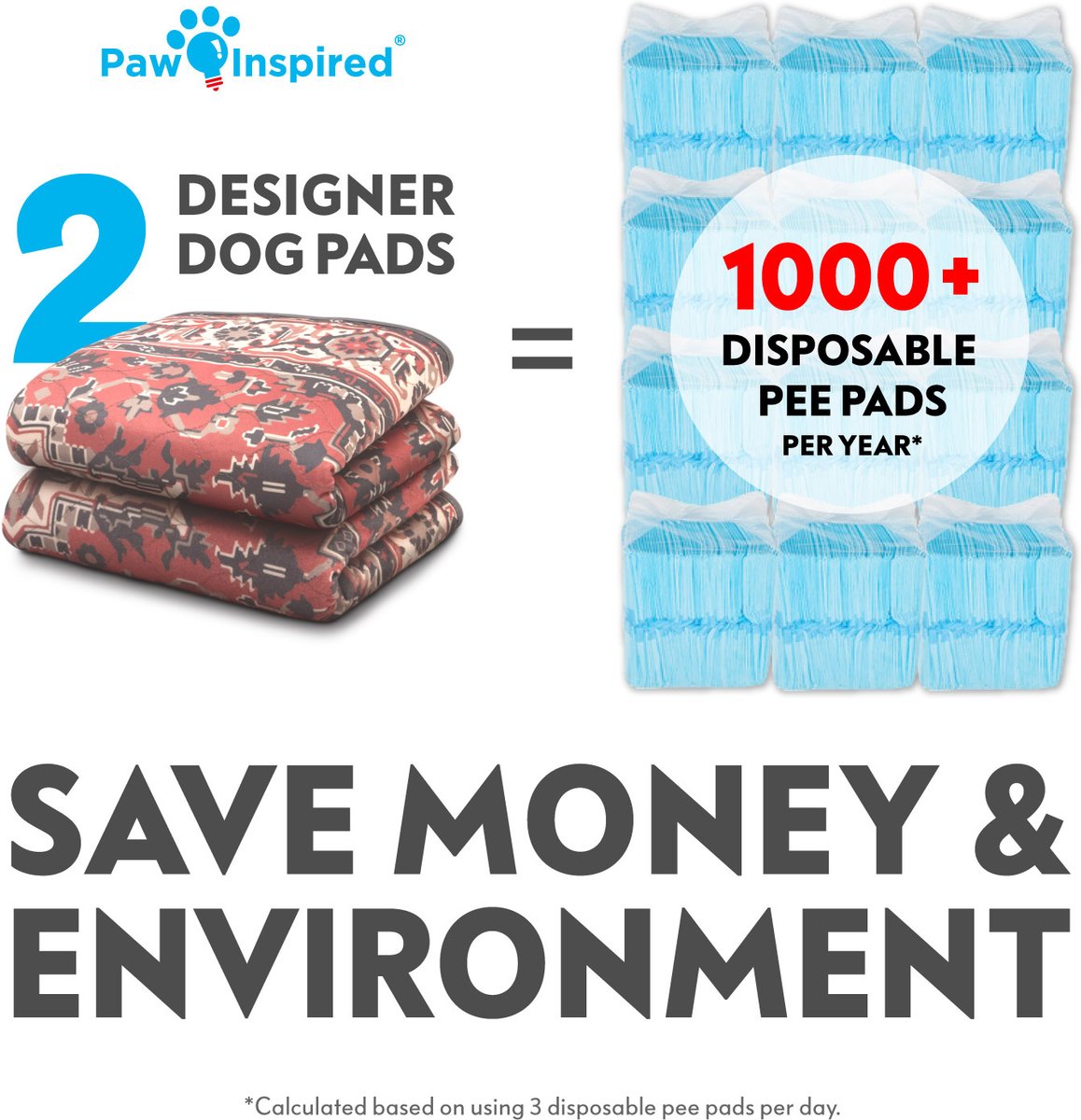 Paw Inspired Designer Patterned Print Washable Dog Pee Pads, Persian, 36 x 36-in, 2 count