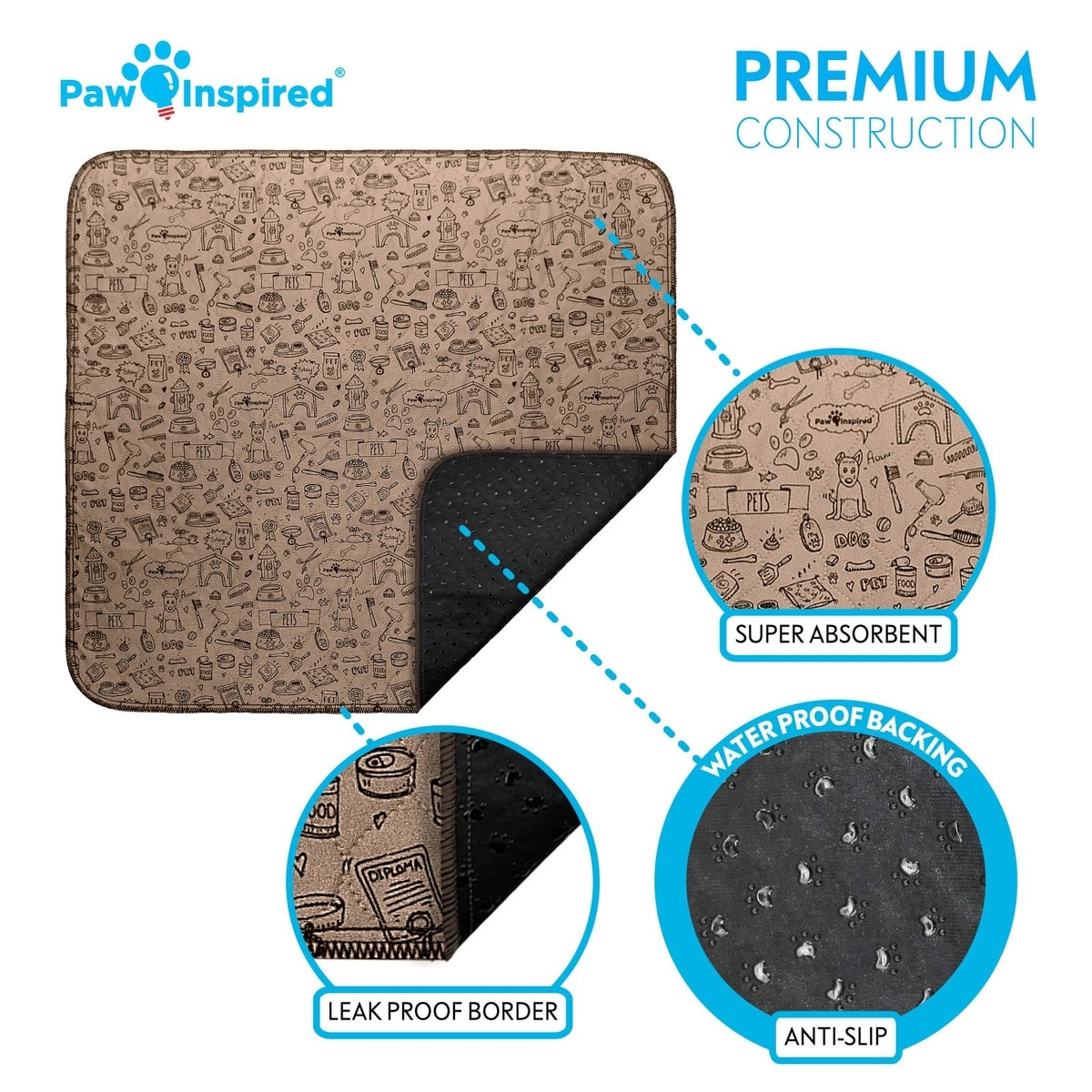 Protect against accidents from urine, water spills, muddy paws, shedding, and other messes with these versatile, reusable pads. The super-absorbent material locks in moisture and even controls odors to keep unpleasant smells away. With a premium silicone anti-slip backing, Paw Inspired Dog Pads protect against slipping and sliding, too. These pads ensure your pet stays comfortable and safe while protecting surfaces in your home.