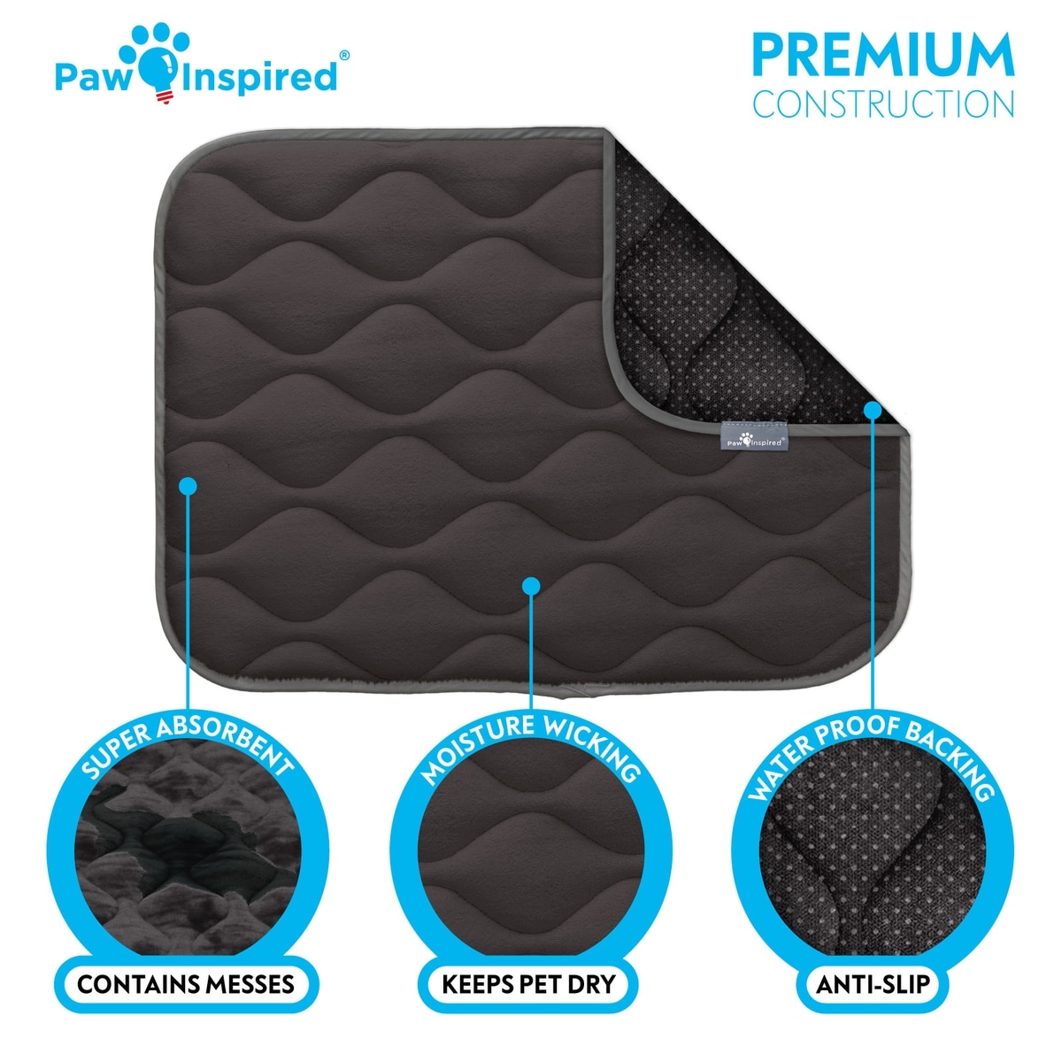 Leakproof, Multi-Layer Design With a moisture-wicking top layer, super absorbent core, and waterproof bottom, this mat quickly absorbs wetness and controls odors to keep your pet comfortable and the crate dry. Anti-slip backing keeps it in place, too.