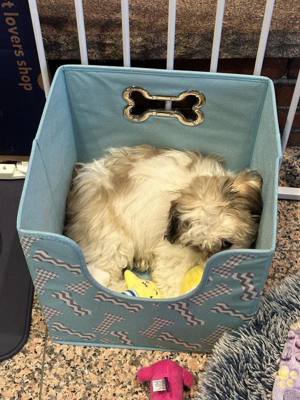 Last fall, I also brought Paw Prints Bone Play Collapsible Pet Storage Bin for Bailey's newest toys and treats. I love the color and the bone print design. This