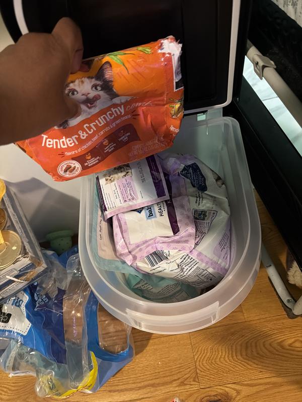 This container has a 15-pound capacity that can store pet food, litter, accessories and more.