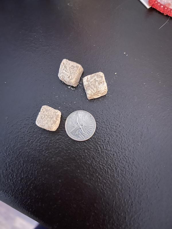 Ted, our 30 lb. Standard sized Pomeranian could smell these treats through the Chewy box! He was growling, running around it and pushing the box around with his nose! I finally retrieved the box and opened up the treasure inside. I held it down for him to see it and he sucked up about 3 treats in his mouth lol. He was going nuts!. These are a good treat/bribe size. No weird smell and are light and crunchy. I did give him a couple more because he loved them so much. I would definitely recommend these treats. You could also break them up as cat treats.