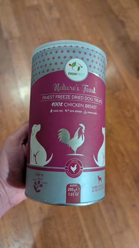 Omgosh ... I can't say enough about PawFect Nature's Feast Chicken Breast! We use them for treats, training, and meal toppers. I have a 4 year old Sheepadoodle, 1 year old wire haired chihuahua,, and a 18 year old chihuahua! These chicken treats have been a godsend for my older chihuahua is such a finicky eater ... all I have to do is take two of these crushed and sprinkled on his food and he'll eat! Perfect for all my fur babies. Thank you:)