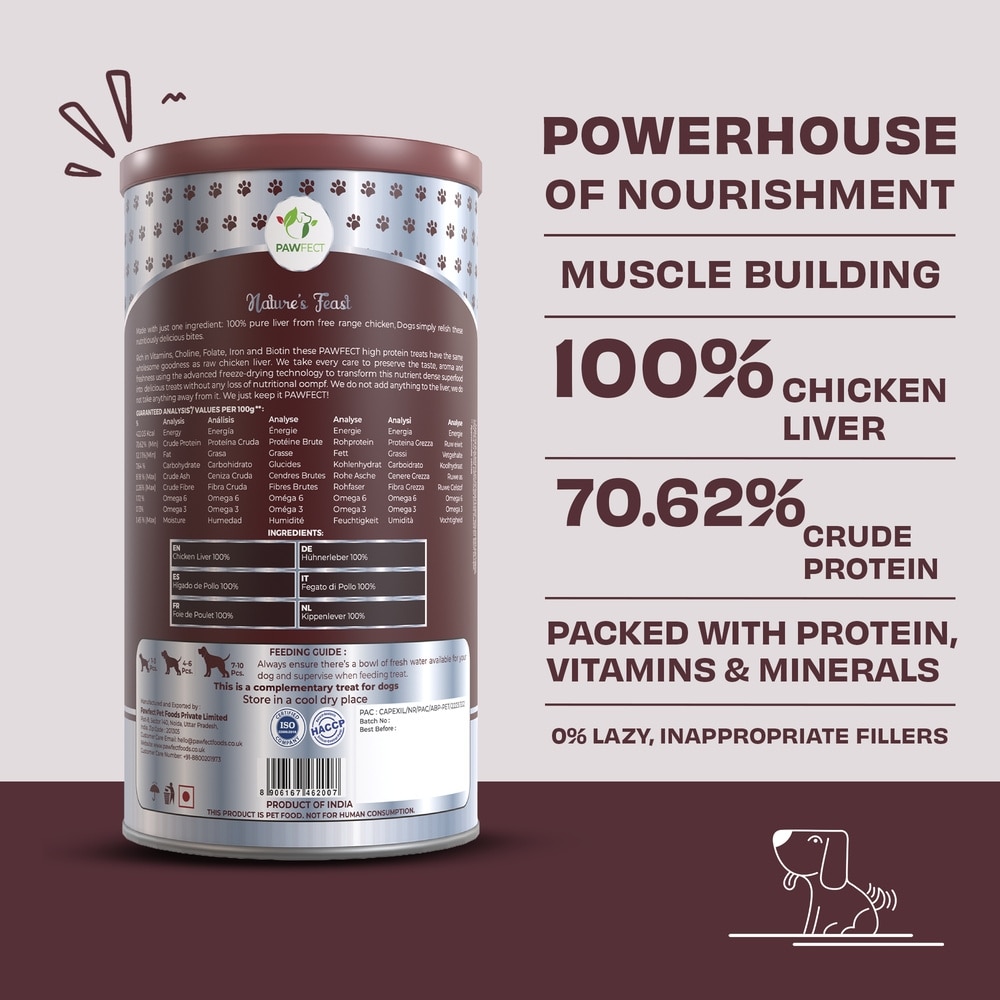 - Drool-worthy dog treats are made from 100% natural freeze-dried chicken liver.