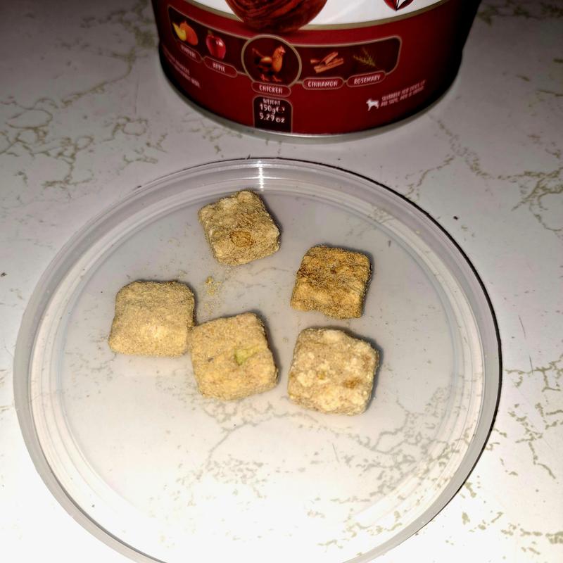 There is one problem with these: they look so tasty when I open the canister that I’m tempted to eat one. They are light, puffy little pieces of delight for my lab, who in fairness likes everything. But these feel like people food, no weird odors or strange crunchiness. She’s happy, I’m happy. Win - win!