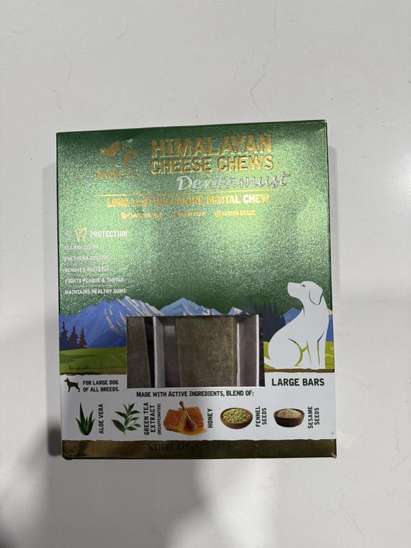 Our dog loves these Himalayan Cheese Chews. She took to them right away and carries it with her until it's gone. They are a hit in our house! These chews really freshen her breath and seems to clean her teeth well and helps maintain healthy gums.