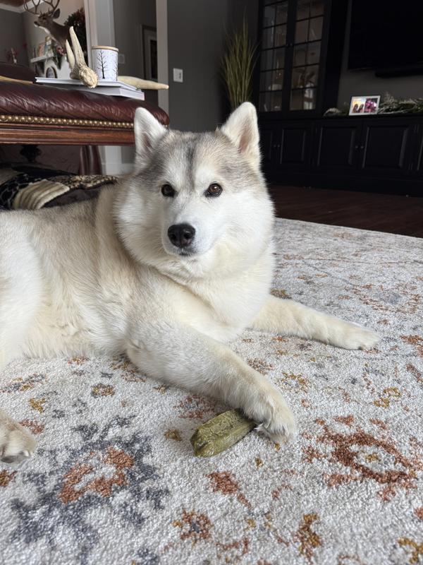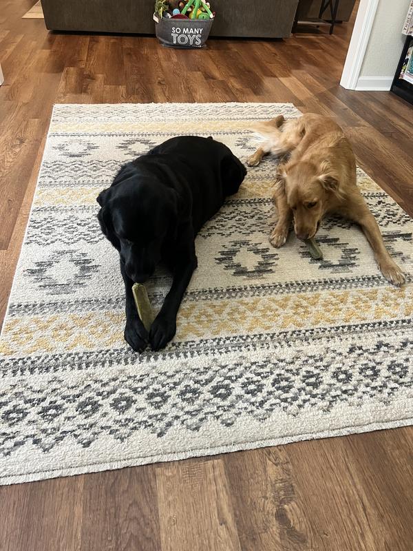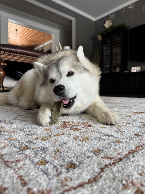 Seriously, I have got to admit… We have gotten a lot of things from the pawssibility plan, and this one has been the best. We have two giant dogs. One of them always chews on Nyla bones. The other will occasionally.. but he’s not a big chewer, and his teeth show it, covered in plaque. The two dogs have been fighting over these two sticks and anytime we see them, they have one in their mouth, chewing it down till it’s a nub. Especially the one who never chews so this has been amazing for his teeth. I can’t get over it Just amazing!!! They have destroyed them, but it took about 3-4 days! Yes, they are a little pricy but I am going to have to find a way to get them some more.