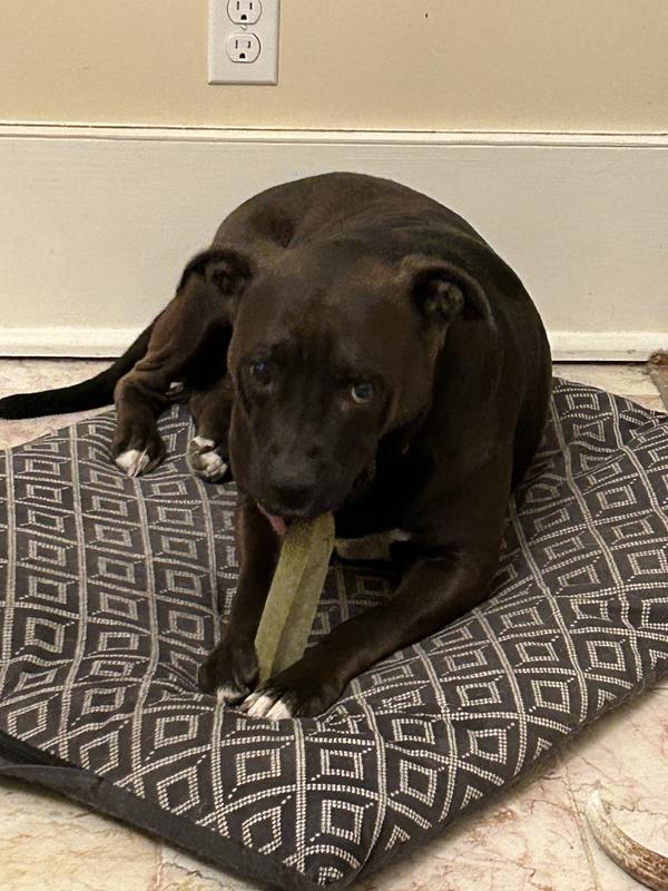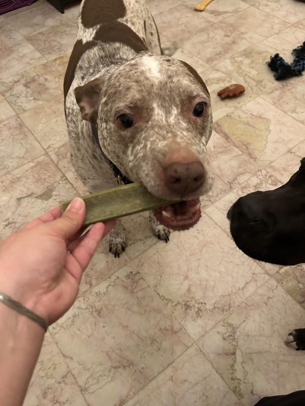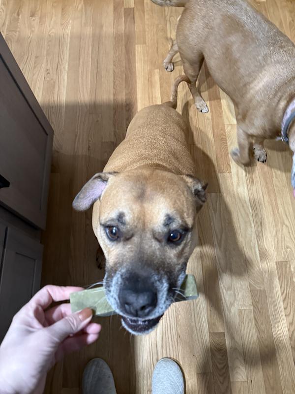 I really thought that this was going to be a dental chew that she would get through fairly quickly. I have been pleasantly surprised that she really loves this, and it is certainly a long lasting, enjoyable chew for her. The ingredients are top-notch, so I feel very comfortable giving this to her whenever she wants.