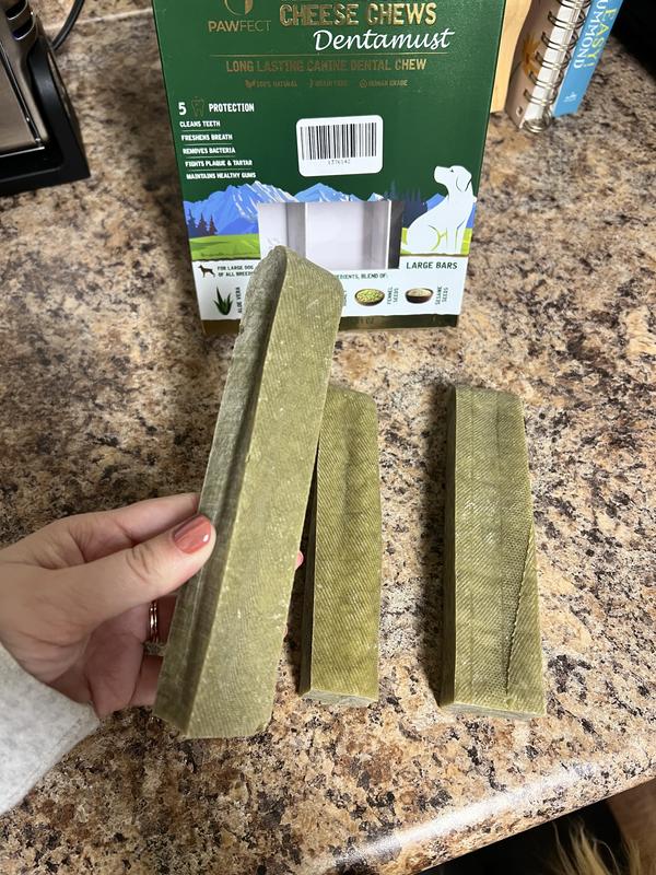 Do cheese chews help with dental health? Yes! The hard texture of the cheese chews helps remove plaque and tartar buildup while your dog chews, promoting healthier teeth and gums.