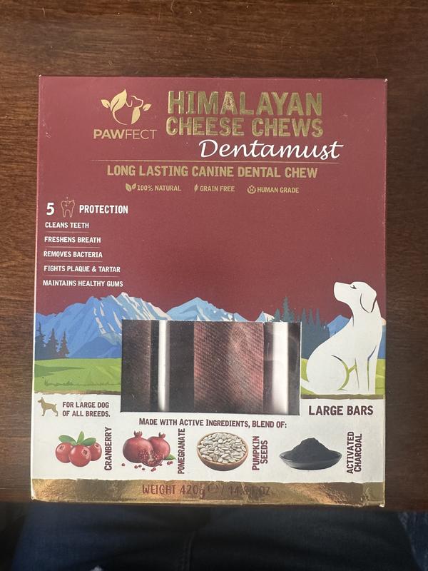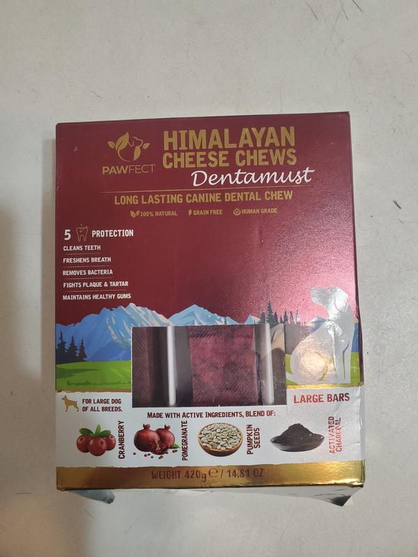Pawfect Dentamust Himalayan Cheese Chews Large All Natural High-Protein Grain-Free with Cranberry Pomengranate Pumpkin seeds & Activated Charcoal Dental Dog Treats, 3 count