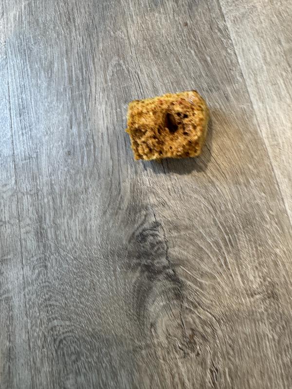 My doggo is really enjoying this dental chew. A big plus is that it is hard enough for her to gnaw on and clean her teeth and yet soft enough for her not to get bored. It also does not break apart and leave crumbs everywhere.