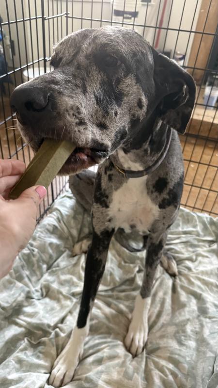 My Boxer LOVED this chew!! She worked on it for over a day and her breathe was so much fresher! I will definitely be purchasing more for all of my dogs!! You won't