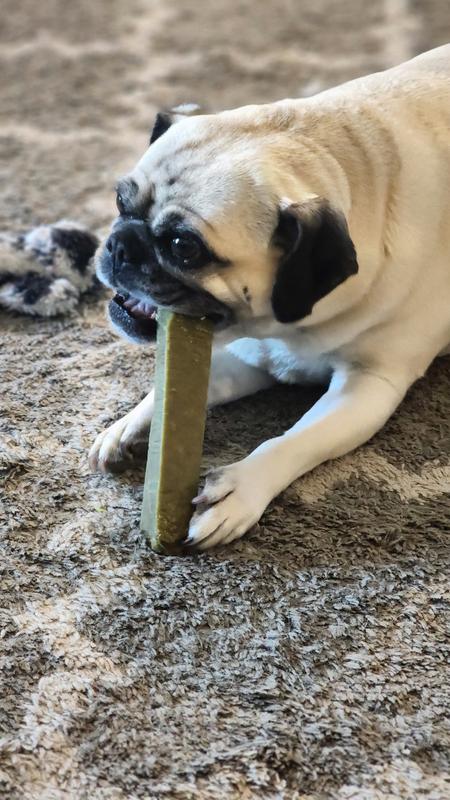The Himalayan cheese dental stick is great! It’s long lasting, super thick so it was hours of enrichment w/ a bonus of being great for their teeth. Even my picky eaters liked it! It has ribbed sides to really clean their teeth and only 8 ingredients! All of which I can pronounce. Definitely recommend!