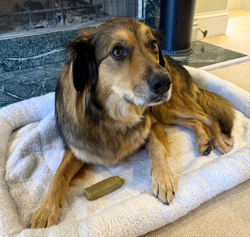 My pup was excited to receive her Himalayan Cheese Chew. She is a selective chewer and has enjoyed carrying her treat around the house to all of her favorite spots and gnawing on it like a bone when she is anxious or bored. i really like that there is no risk of digesting pieces of plastic like some other chew toys and that it doesn’t “disappear” in one sitting.